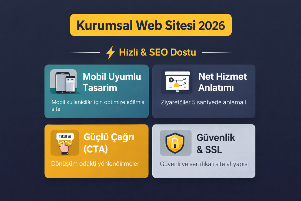 Dijital Pazarlama ve Web Tasarım Rehberleri Web Tasarım Kurumsal Web Sitesi Nedir? Küçük ve Orta Ölçekli İşletmeler İçin 2026 Rehberi Mart 1, 2026• Web Tasarım SEO Nedir? Küçük İşletmeler İçin Anlaşılır ve Güncel Rehber (2026) Mart 1, 2026• Web Tasarım İstanbul Web Tasarım Fiyatları 2026 Gerçekçi ve Güncel Rehber Mart 1, 2026•